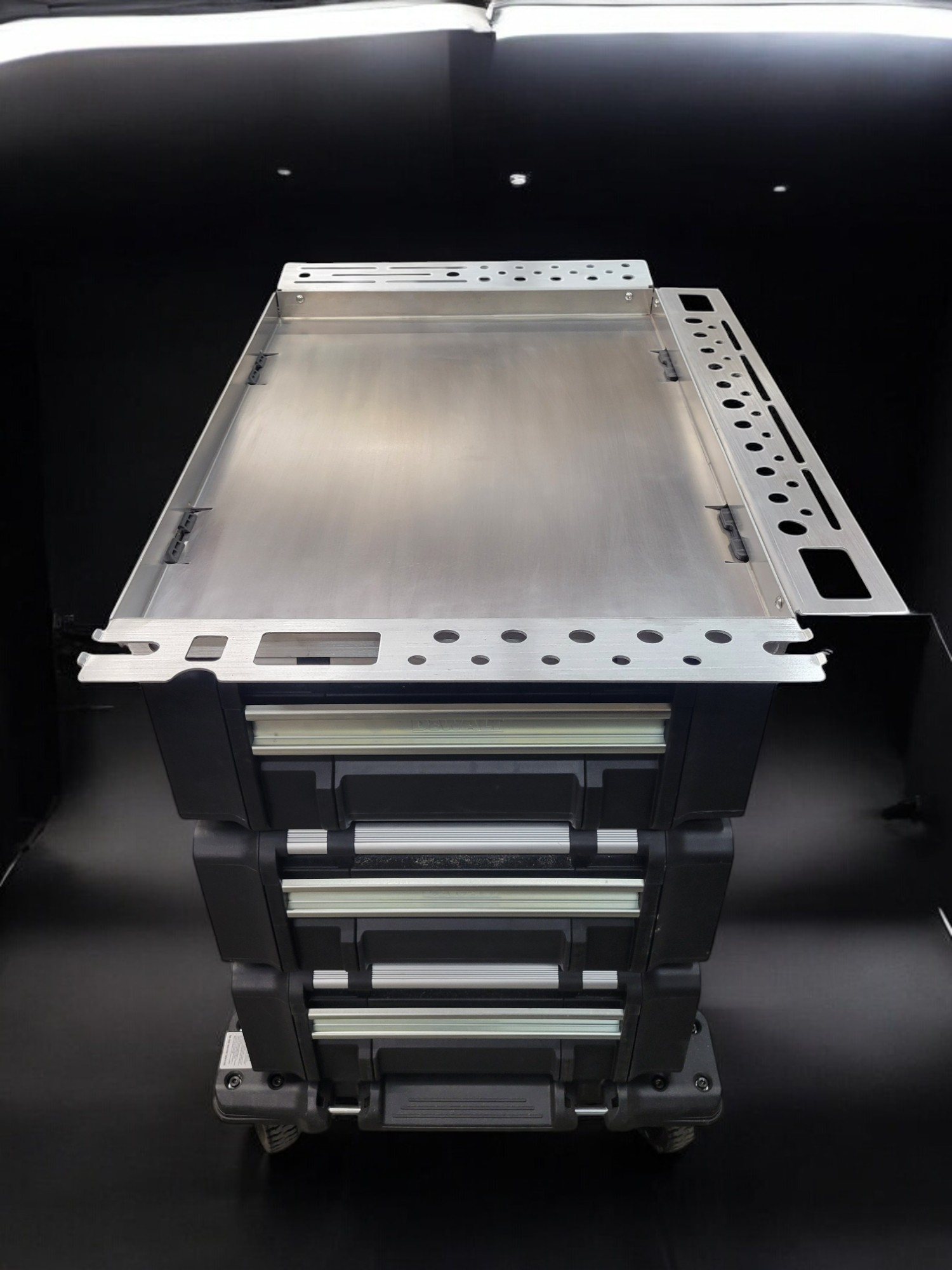 This is a complete tray system and mounts directly to the top of your cart with the 4 quick latches that come on The DXL Tool Box. No need purchase extra hardware or work surface tops.